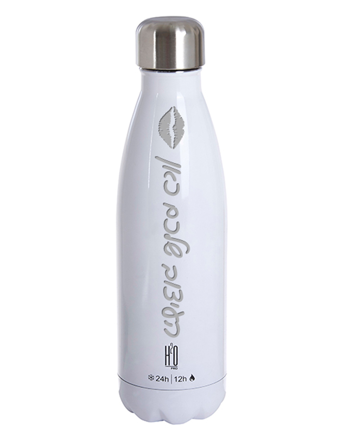 בקבוק תרמוס בטקסטורת עץ עם חריטה